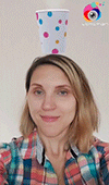 Сup of very hot coffee is on the user’s head. The drink comes over their face when the user raises their eyebrows!